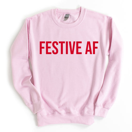 Festive AF Crewneck Sweatshirt Text on this sweatshirt has a luxurious soft velvet feel Material: 50% cotton, 50% polyester, fleece lined for extr...