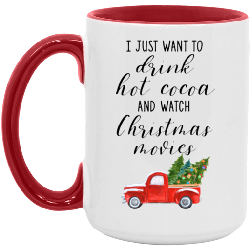 I Just Want To Drink Cocoa And Watch Christmas Movies 15 oz ► High quality mugs and printing► Directly printed with ink to provide a long lasting p...