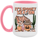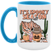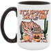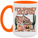 - High quality ceramic mug with two-tone rim, interior, & handle